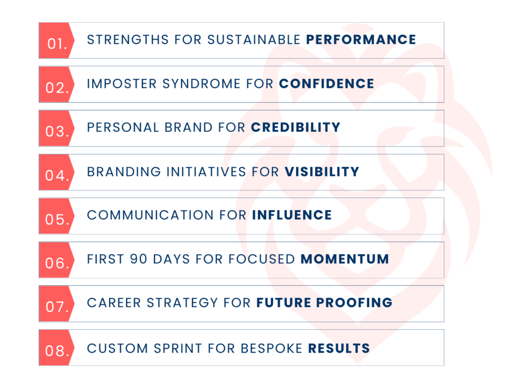 My methodology is a thoughtfully curated blend of my 15 years of marketing and public relations leadership, 17 years of global executive coaching experience, my proprietary branding strategy, and the globally recognised Imposter Syndrome frameworks developed by Dr Valerie Young and Dr Lisa Orbé-Austin, both of whom I’ve had the privilege of training under.